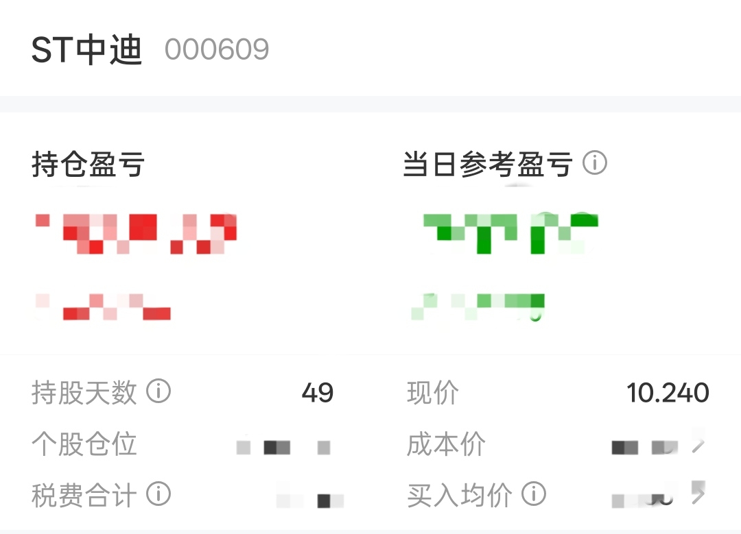 $ST中迪(SZ000609)$ 上次9块多入手一路硬扛到7.16。加仓补仓到现在还能抗三四个跌停,再看好的股切记一定不要梭哈。有加仓资金的前提下,越跌只会越兴奋