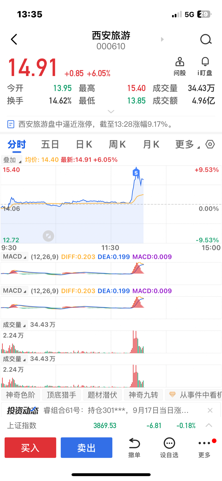 $西安旅游(SZ000610)$ 15.35卖了,加仓兄弟科技!