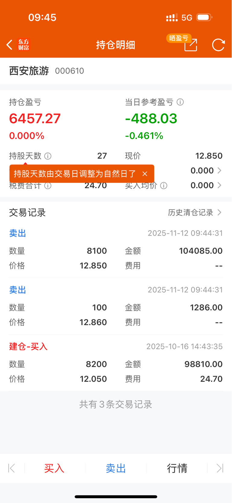 $西安旅游(SZ000610)$ 清仓了,留下的兄弟发大财。