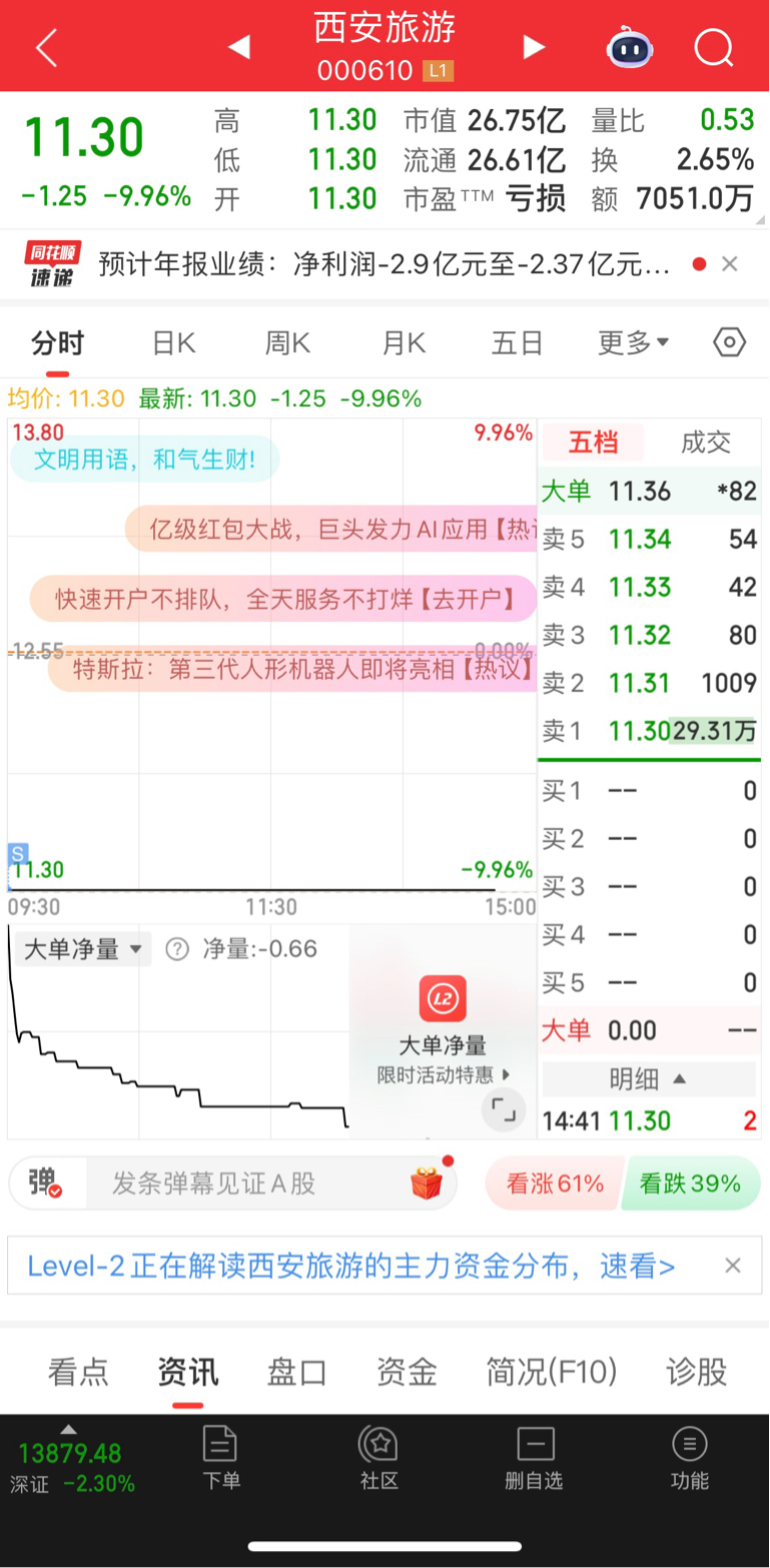 $西安旅游(SZ000610)$ 真的是怕了,这几天吃不下睡不着,昨晚挂单,今早开盘卖掉了