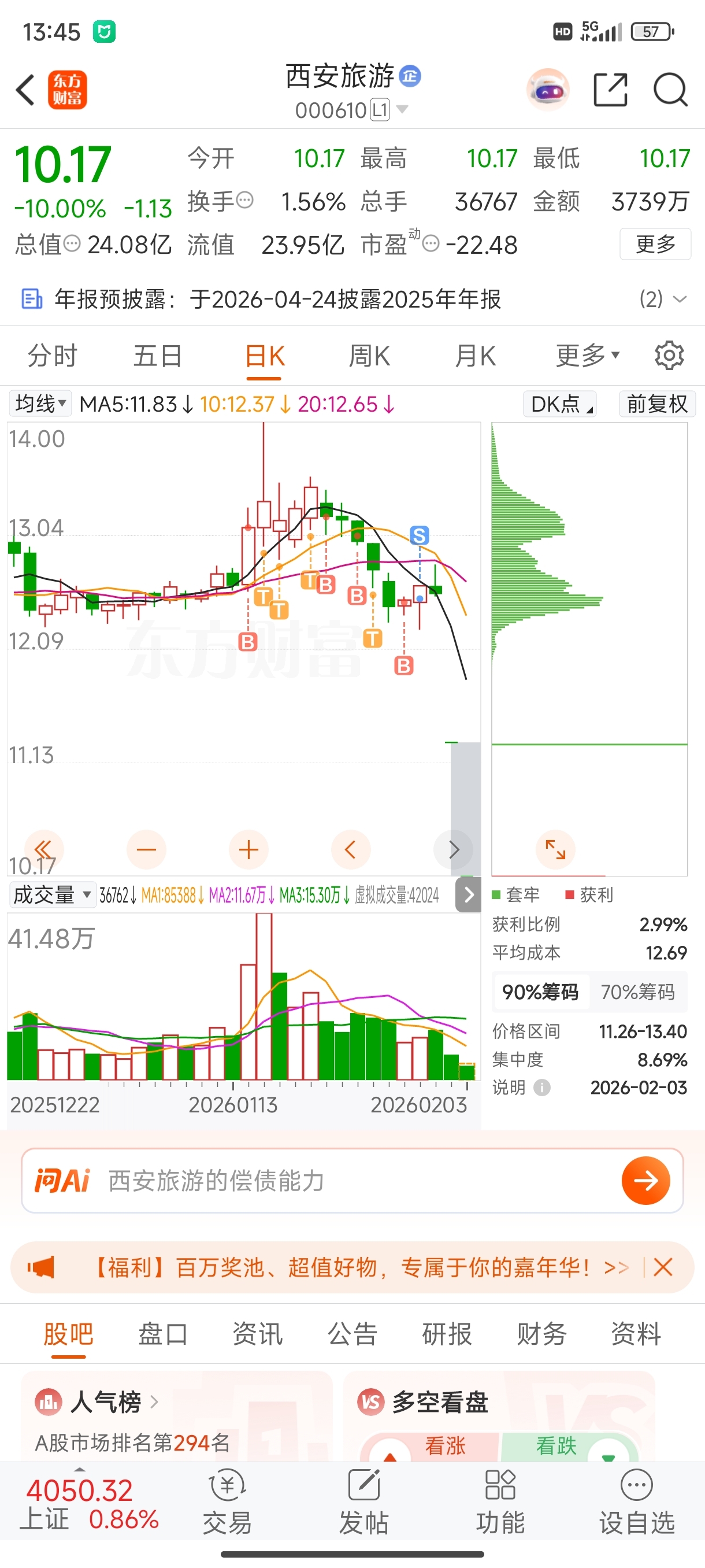$西安旅游(SZ000610)$ 还好跑得快,虽然亏2000