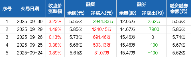 焦作万方:融资净偿还2944.83万元,融资余额5.55亿元(09-30)