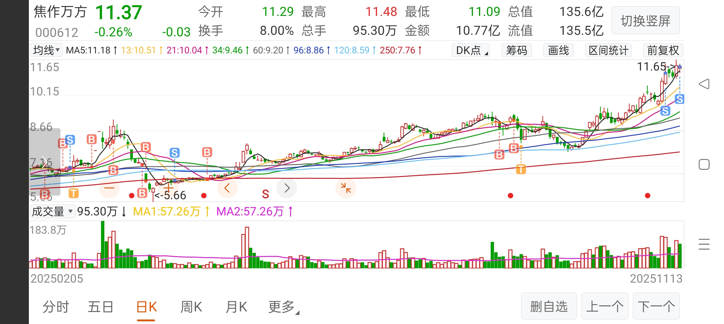 $焦作万方(SZ000612)$ 减仓了,该强不强#炒股日记#