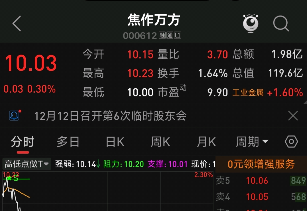 $焦作万方(SZ000612)$ 还好早上跑了,不能格局一点,天天冲高回落