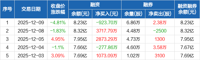 焦作万方:融资净偿还923.7万元,融资余额8.23亿元(12-09)