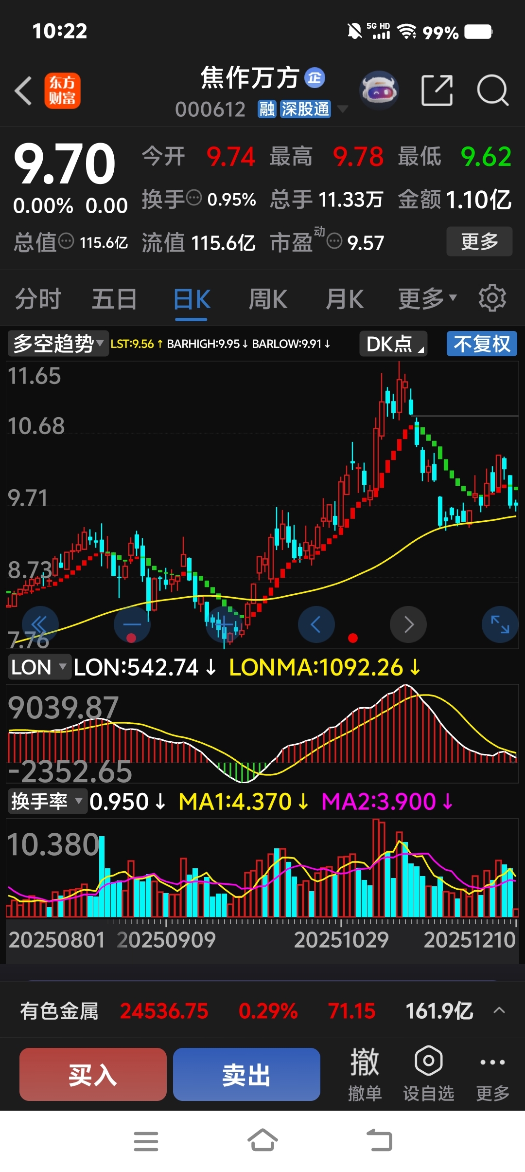 $焦作万方(SZ000612)$ 今天9.68开始介入,等待惊喜