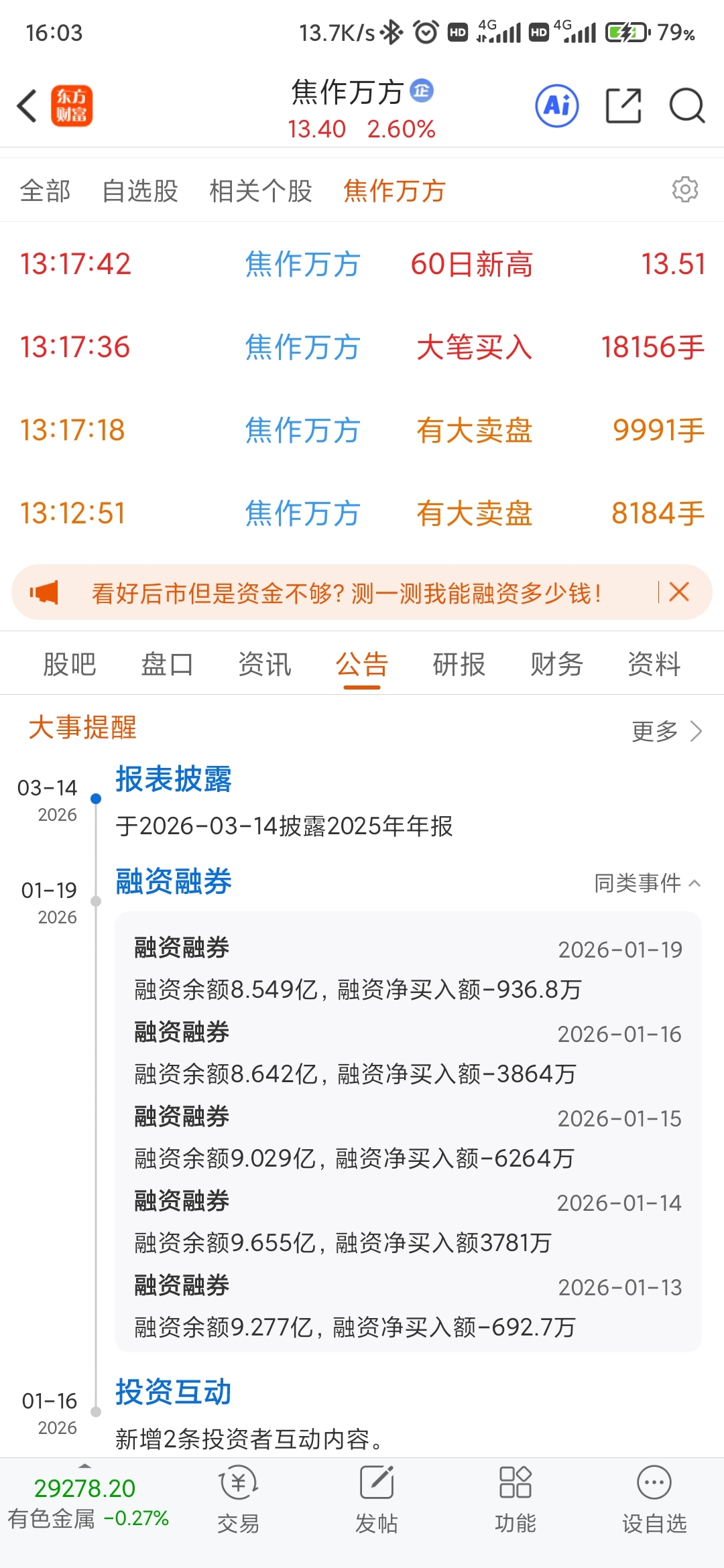 $焦作万方(SZ000612)$ 早盘下砸,估计又是融资盘砸的,下午受板块影响拉起,参考$华天科技(SZ002185)$ 参考华天科技今天的走势,大概率就是明天焦作的走势,下午拉升要减仓,明天大概率低开,高开必砸的#收盘点评# #复盘记录# #炒股日记# #实盘记录#