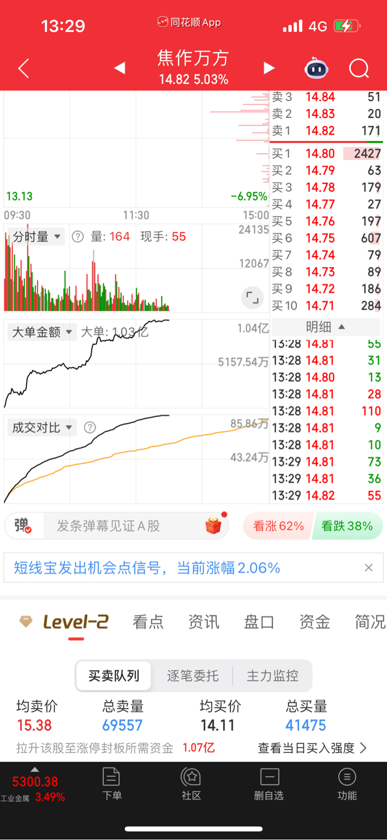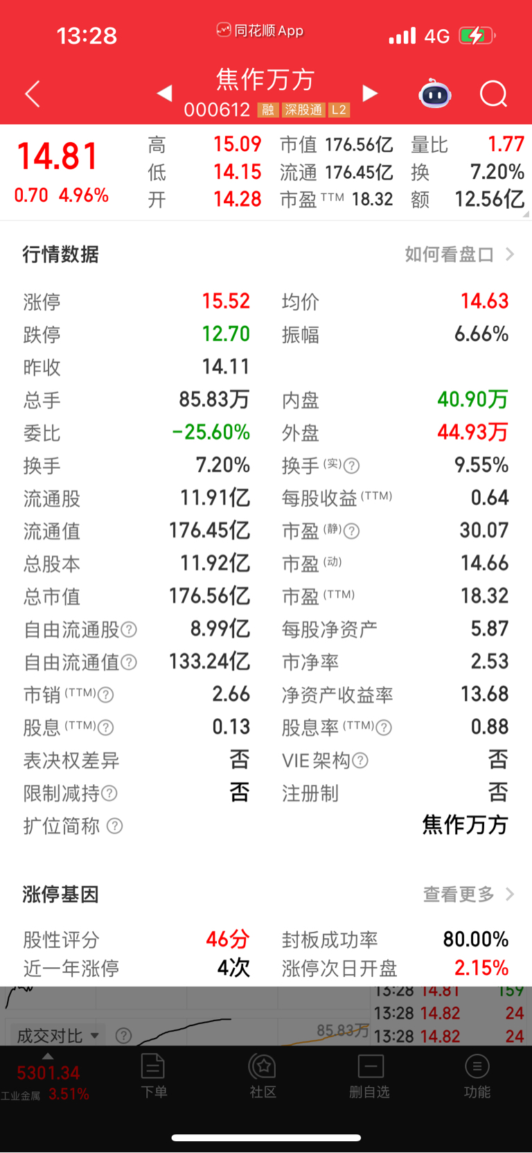 $焦作万方(SZ000612)$ 都在跑,不然又回落了