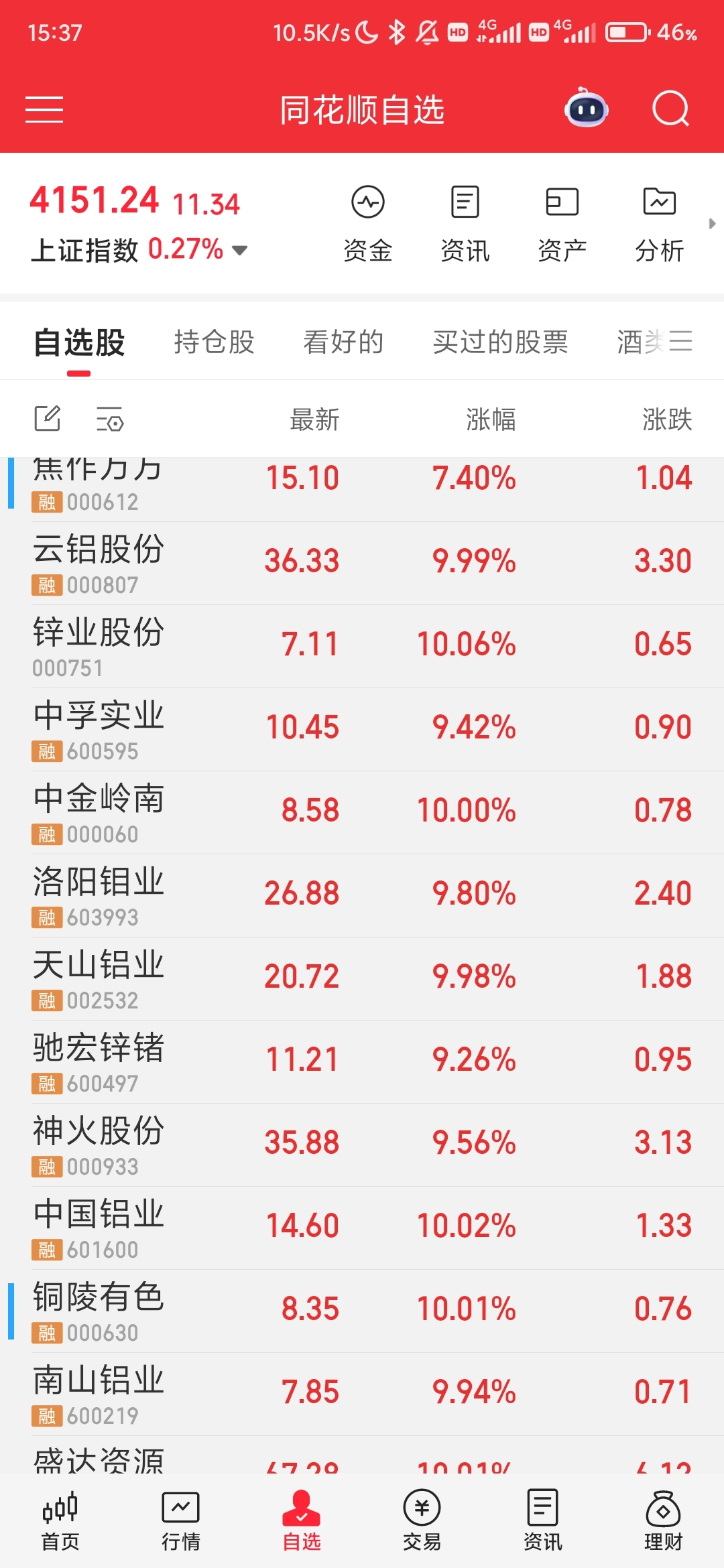 前面就说了,买南铝,天山,洛阳钼业,焦作就是杂毛,本来今天按到水下的,被中铝,南