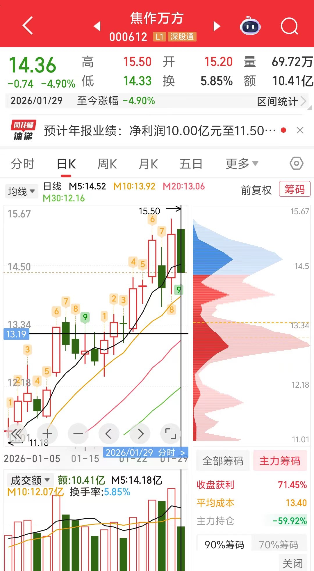 $焦作万方(SZ000612)$ 借业绩来出货,涨不如板块,别人涨停你涨7个点,别人回调二个点内,你回调-5以上,不是杂毛是什么?还有人说是洗盘?急拉大单下砸,那不是出货是什么?放量下跌,今天成交量破19亿以上,现在才交易一小时就成交量12亿了,往往都是早盘出货的多