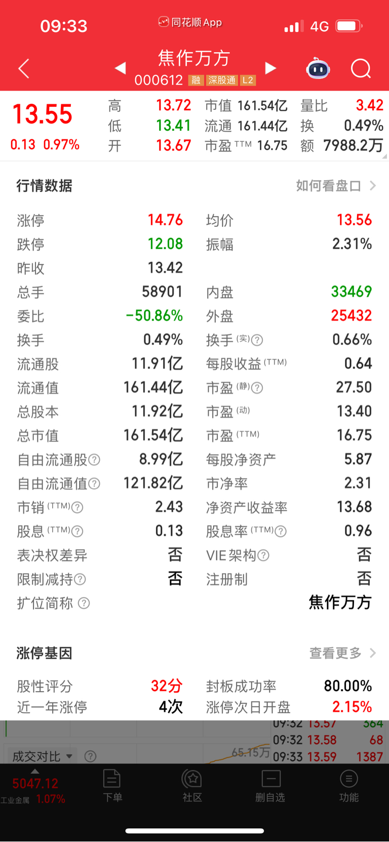 $焦作万方(SZ000612)$ 冲高回落,再套一波人,前面说了减仓减仓