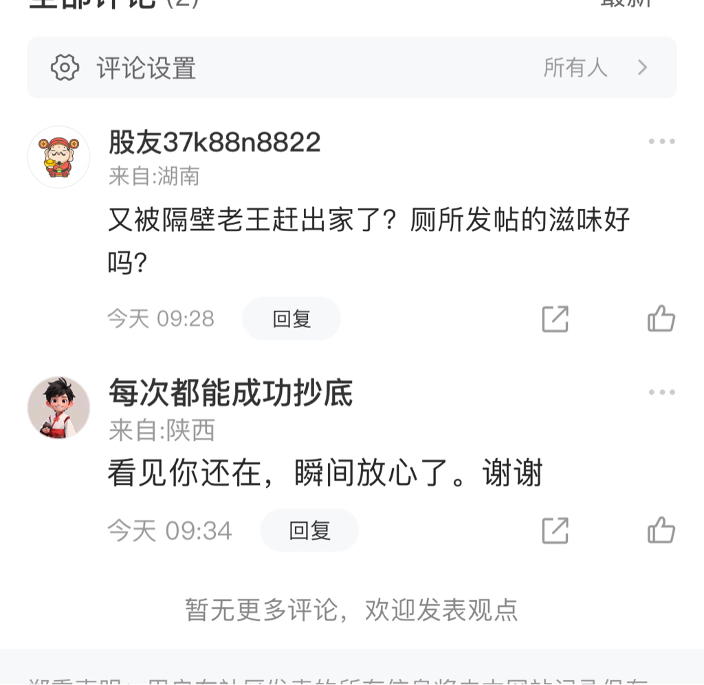 温馨提示: 1.根据《证券法》规定,禁止编造、传播虚假信息或者误导性信息,扰乱证券市场;2.用户在本社区发表的所有资料、言论等仅代表个人观点,与本网站立场无关,不对您构成任何投资建议。用户应基于自己的独立判断,自行决定证券投资并承担相应风险。《东方财富社区管理规定》