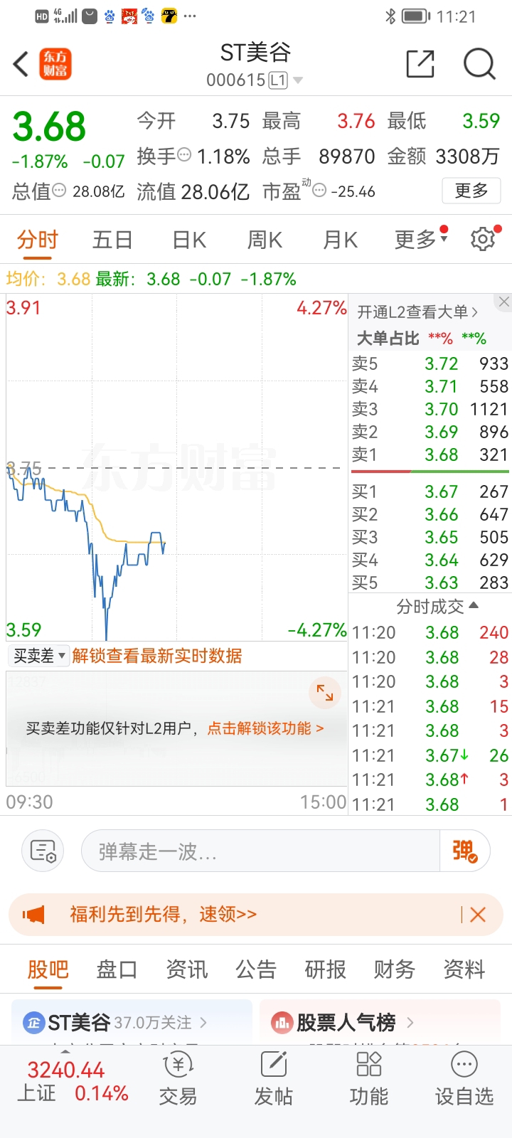 $ST美谷(SZ000615)$ 砸不出恐慌盘,反而被小散都加了仓。$*ST景峰(SZ000908)$ $*ST鹏博(SH600804)$