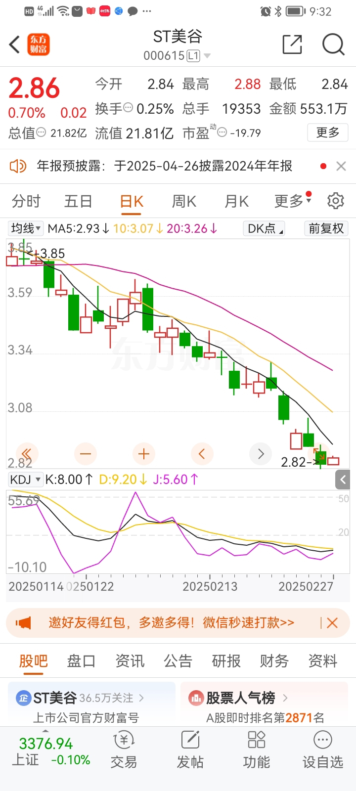 $ST美谷(SZ000615)$ ST重整股只要不退市,越跌越买,摊平成本,高位的会回本,空仓的现买入只输时间,不会亏钱,sT美谷二市唯一医美重整股,物以稀为贵。$*ST景峰(SZ000908)$ $*ST中润(SZ000506)$