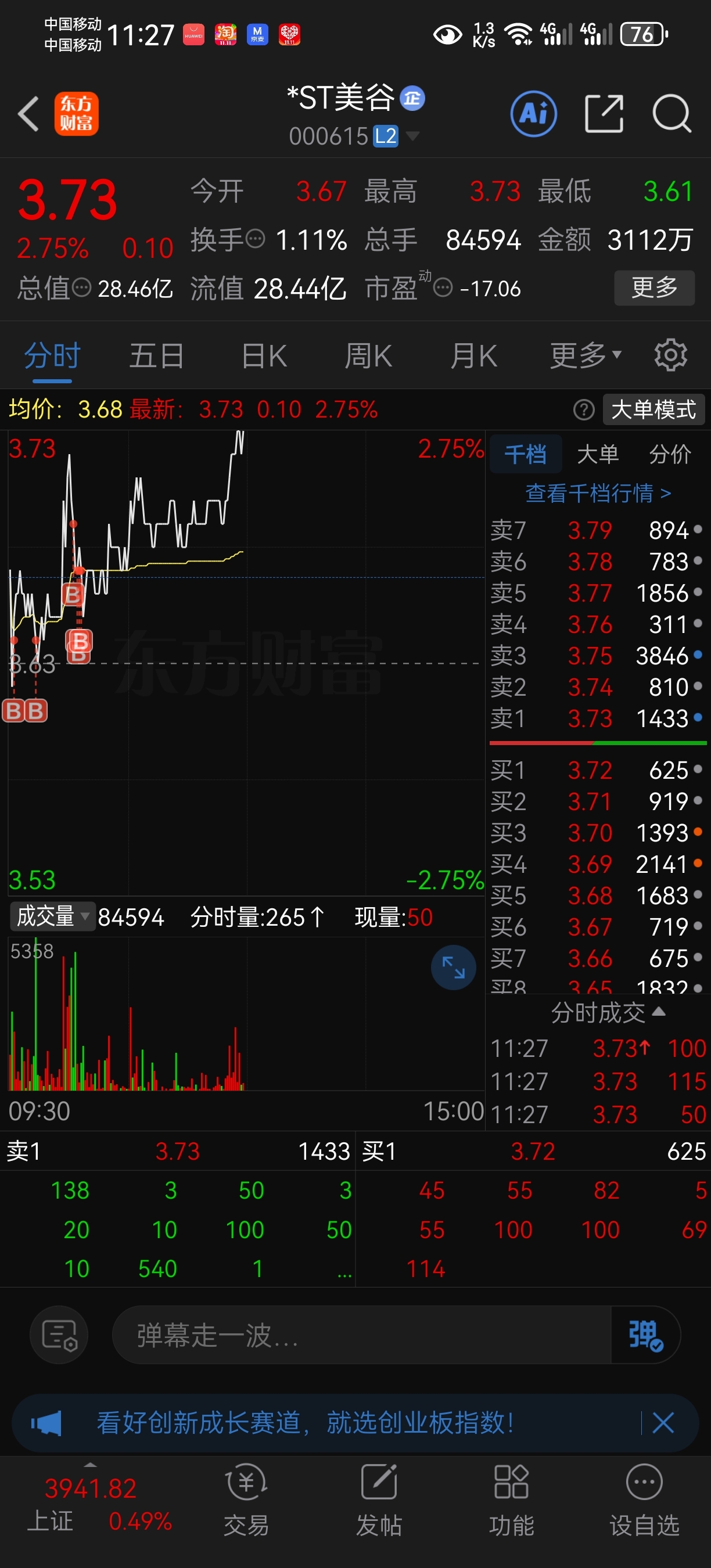 $*ST美谷(SZ000615)$ 今天卖的,周一拍大腿,立贴为证