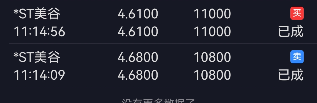 $*ST美谷(SZ000615)$ 47秒,赚了2天饭钱,这是持有5个月来第一做T,仓位不变