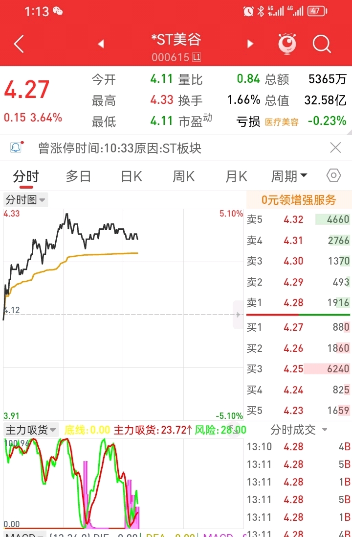 $*ST美谷(SZ000615)$ 主力在收货,拿好,明天继续涨