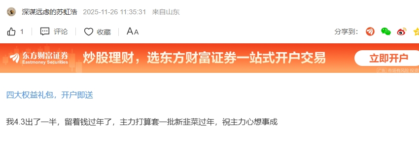 温馨提示: 1.根据《证券法》规定,禁止编造、传播虚假信息或者误导性信息,扰乱证券市场;2.用户在本社区发表的所有资料、言论等仅代表个人观点,与本网站立场无关,不对您构成任何投资建议。用户应基于自己的独立判断,自行决定证券投资并承担相应风险。《东方财富社区管理规定》