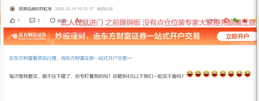 温馨提示: 1.根据《证券法》规定,禁止编造、传播虚假信息或者误导性信息,扰乱证券市场;2.用户在本社区发表的所有资料、言论等仅代表个人观点,与本网站立场无关,不对您构成任何投资建议。用户应基于自己的独立判断,自行决定证券投资并承担相应风险。《东方财富社区管理规定》
