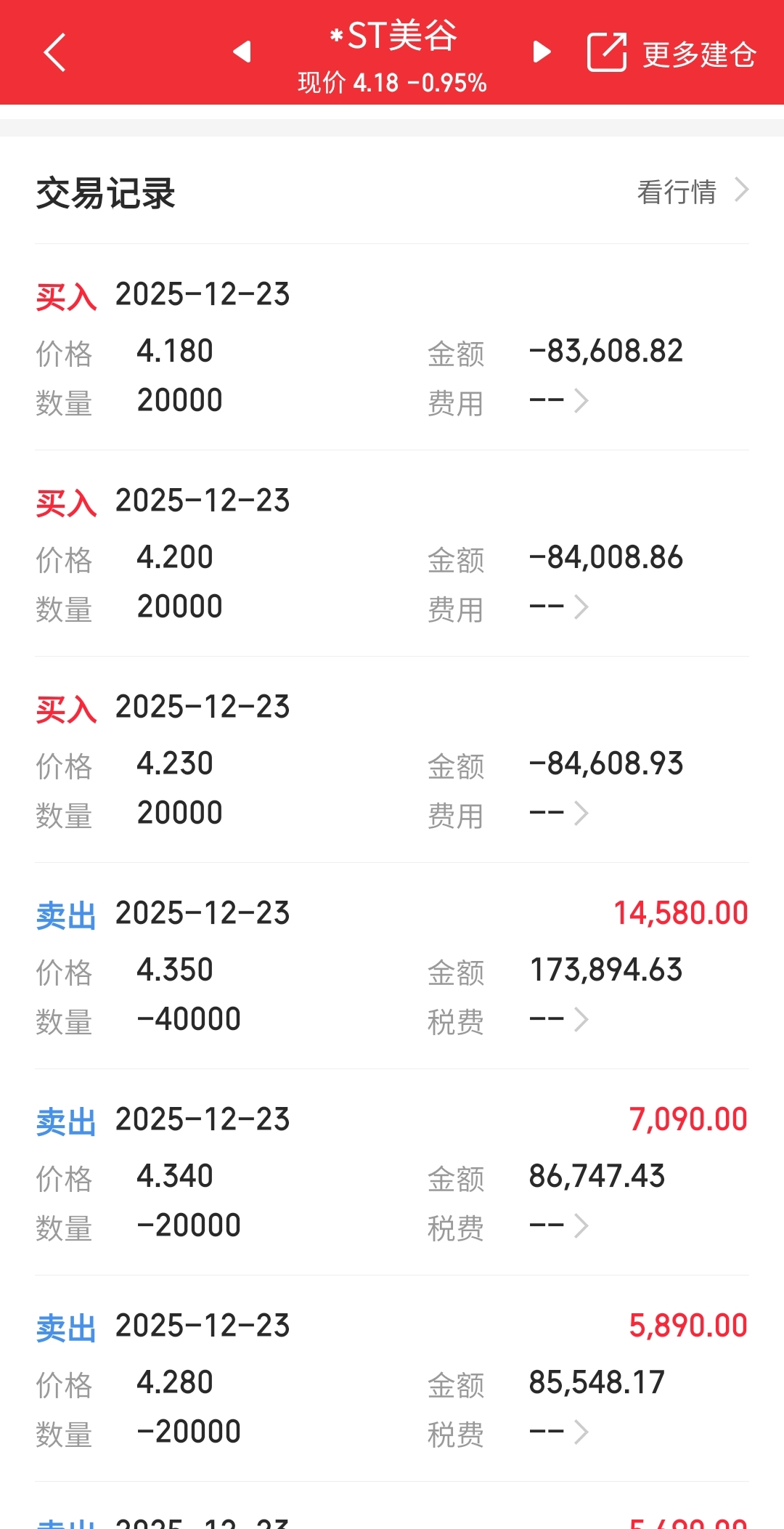 $*ST美谷(SZ000615)$ #炒股日记# #收盘点评# 意外失望,看来低估了主力的人性,看来筹码还没大部分拿到手。言归正传,平时做正t为主,今天做做倒t,切记,只能小仓位做,要不很容易丢了错码。最好不要隔夜,避免直接起飞。