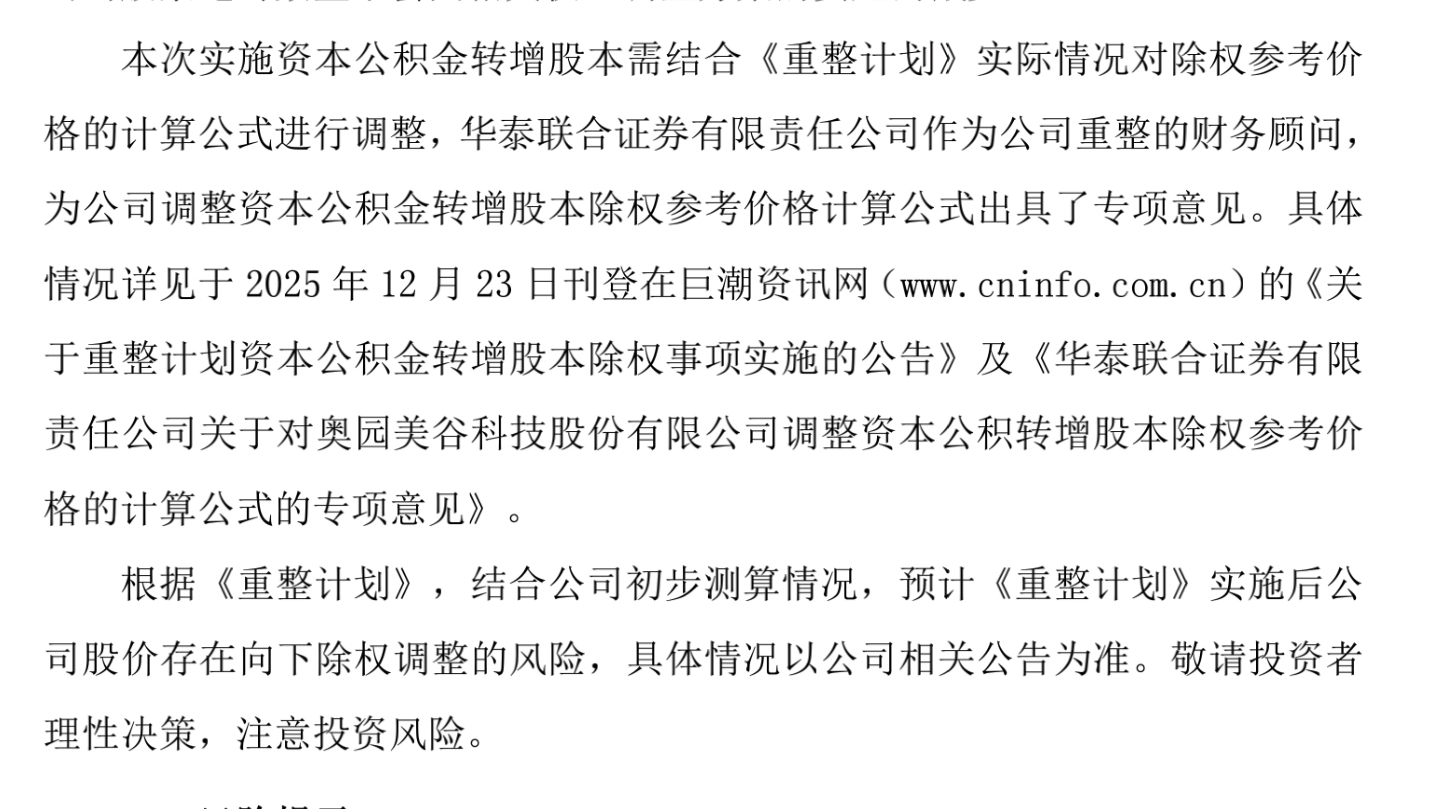 $*ST美谷(SZ000615)$ 看清楚除权价按照26号收盘价调整。