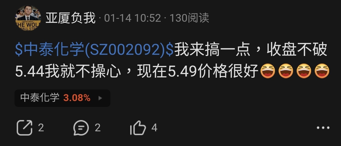 温馨提示: 1.根据《证券法》规定,禁止编造、传播虚假信息或者误导性信息,扰乱证券市场;2.用户在本社区发表的所有资料、言论等仅代表个人观点,与本网站立场无关,不对您构成任何投资建议。用户应基于自己的独立判断,自行决定证券投资并承担相应风险。《东方财富社区管理规定》