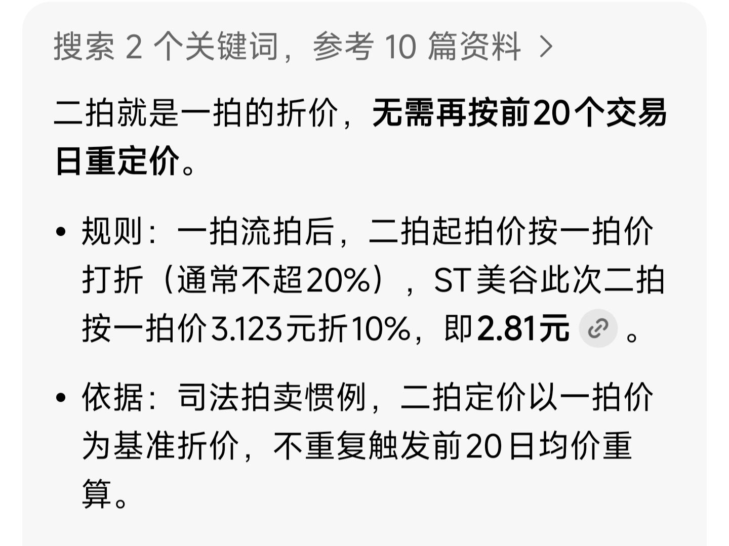 $*ST美谷(SZ000615)$ 看图二拍3.123元打折10%为2.81元,无需再打压股价,二拍价和股价无关,短期股价基本调整到位了。预计巨子生物刚成立的投资基金公司拍得。预计本周出年报预告盈利20亿左右。明后天都是主力抢筹时间。不信你们
