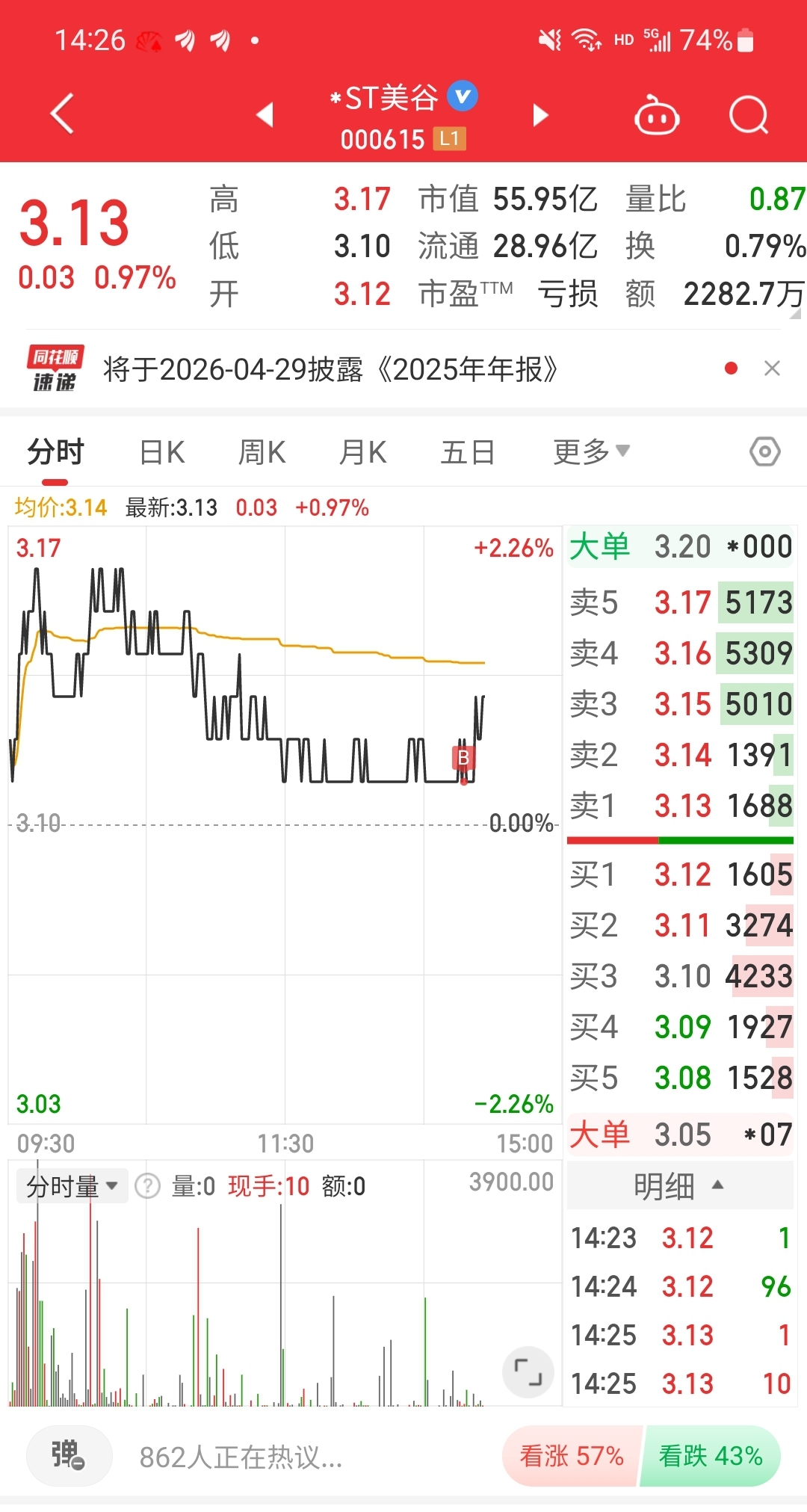 $*ST美谷(SZ000615)$ 没给3.08机会,那就3.1继续加仓,忍不了,一点都忍不了