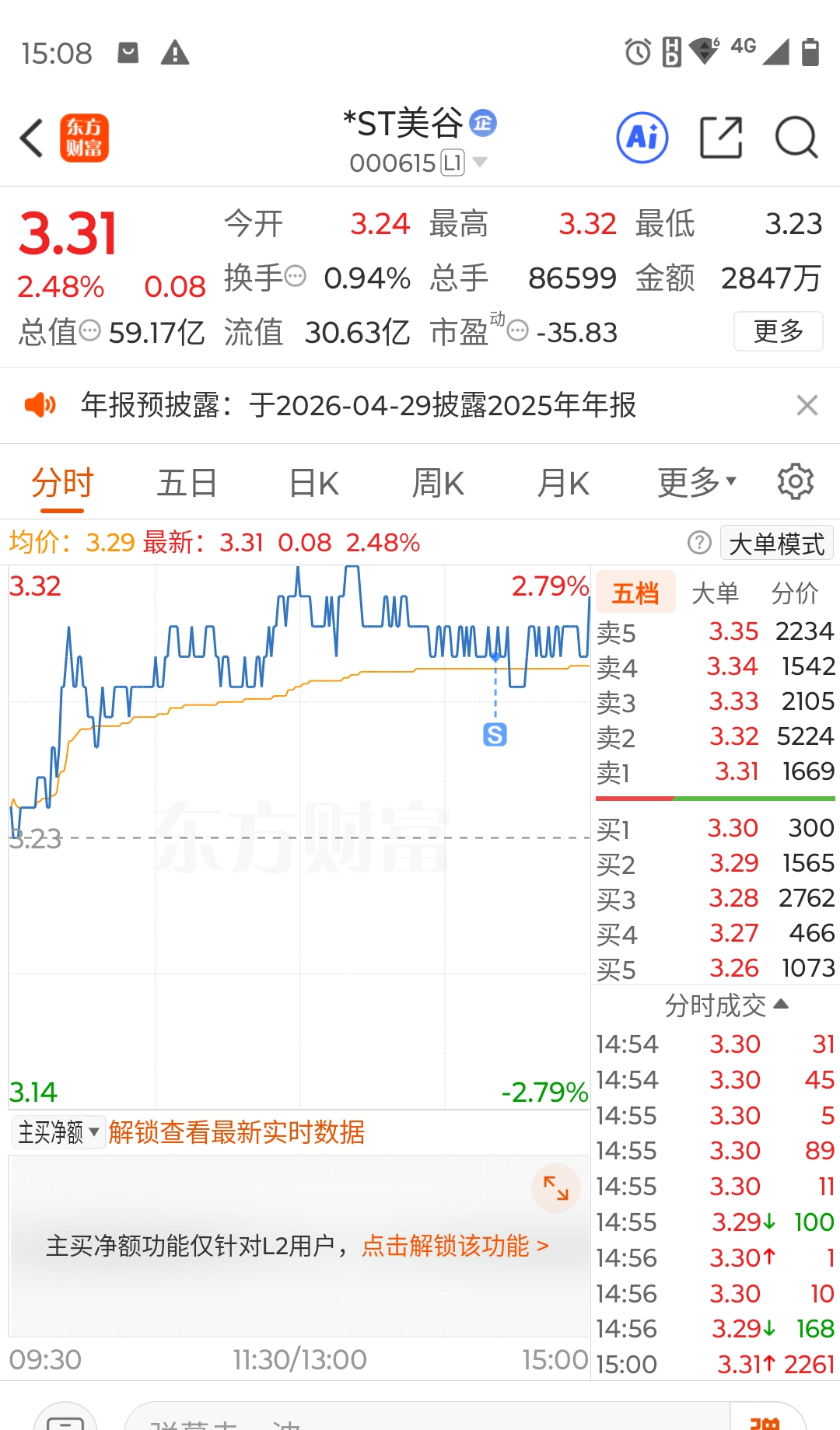 $*ST美谷(SZ000615)$ 尾盘还偷袭两分