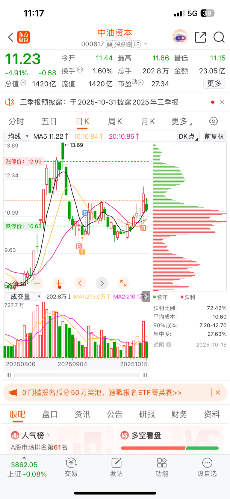 $中油资本(SZ000617)$ 老子就不卖,每次一卖,你就涨,通过缩量阴跌的方式,然后放量拉,再继续出货,什么时候你放量,我就砸给你