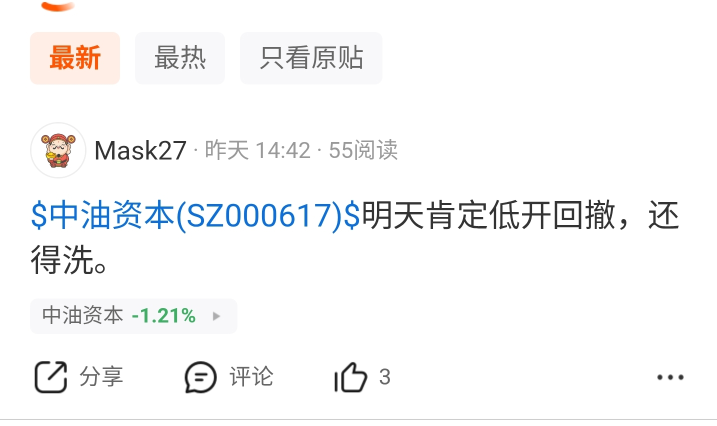 $中油资本(SZ000617)$ 说中了…