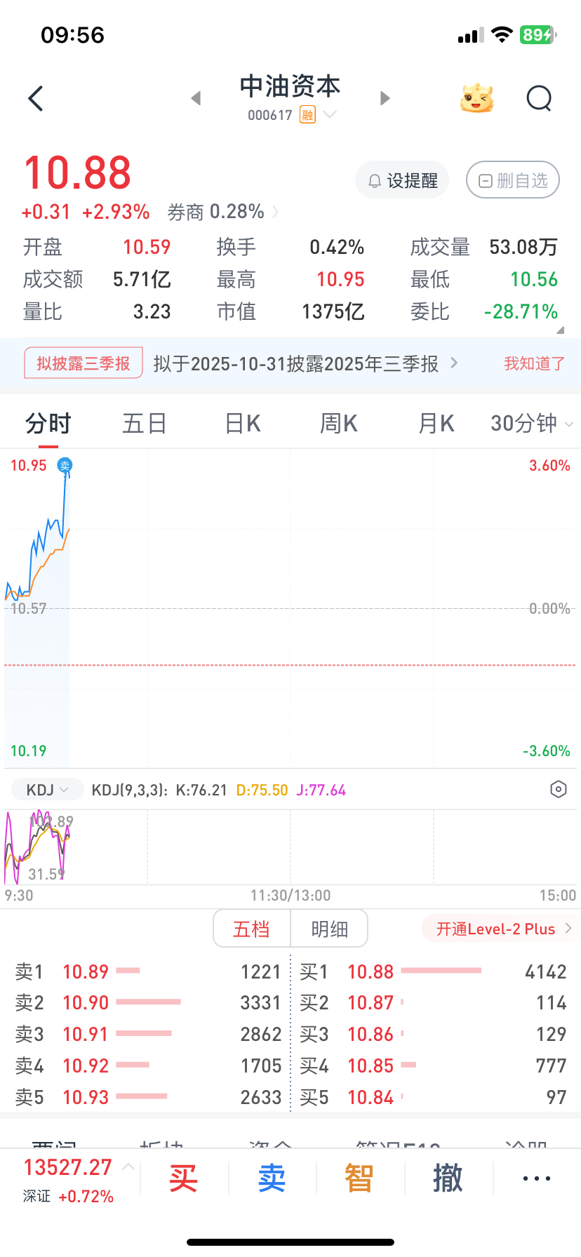 $中油资本(SZ000617)$ 10.54买的,10.92出了,兄弟们好运