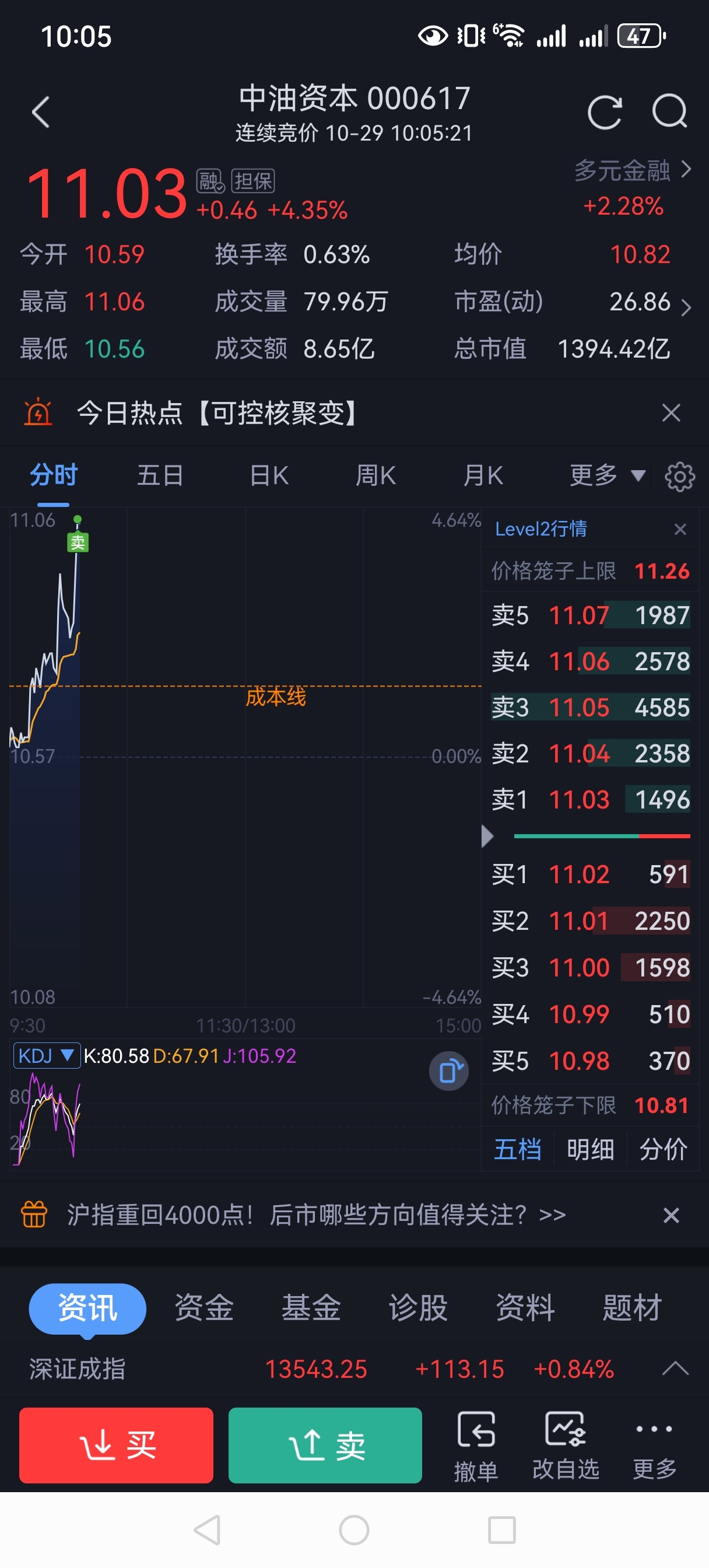 $中油资本(SZ000617)$ 早盘给了机会,那就11.04走人。吃点肉丝。