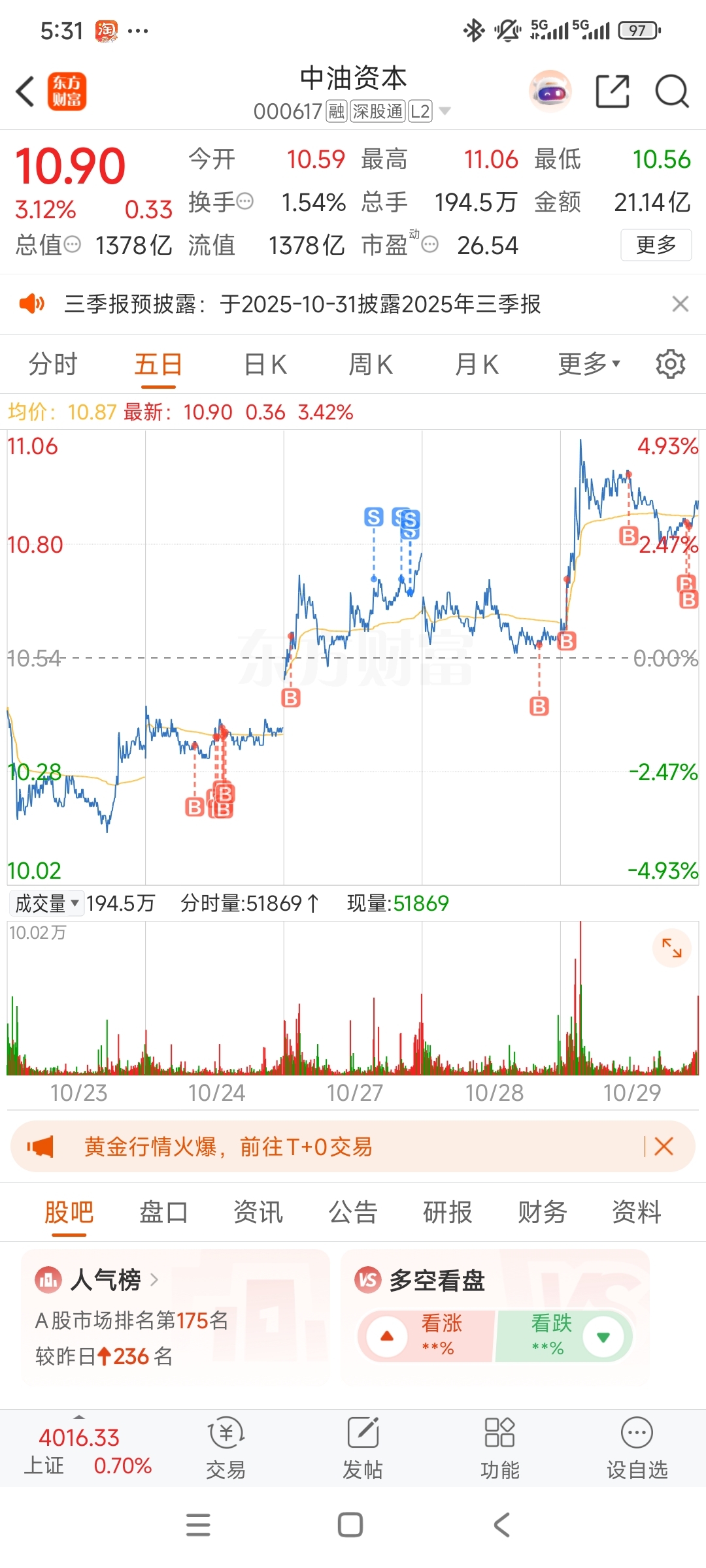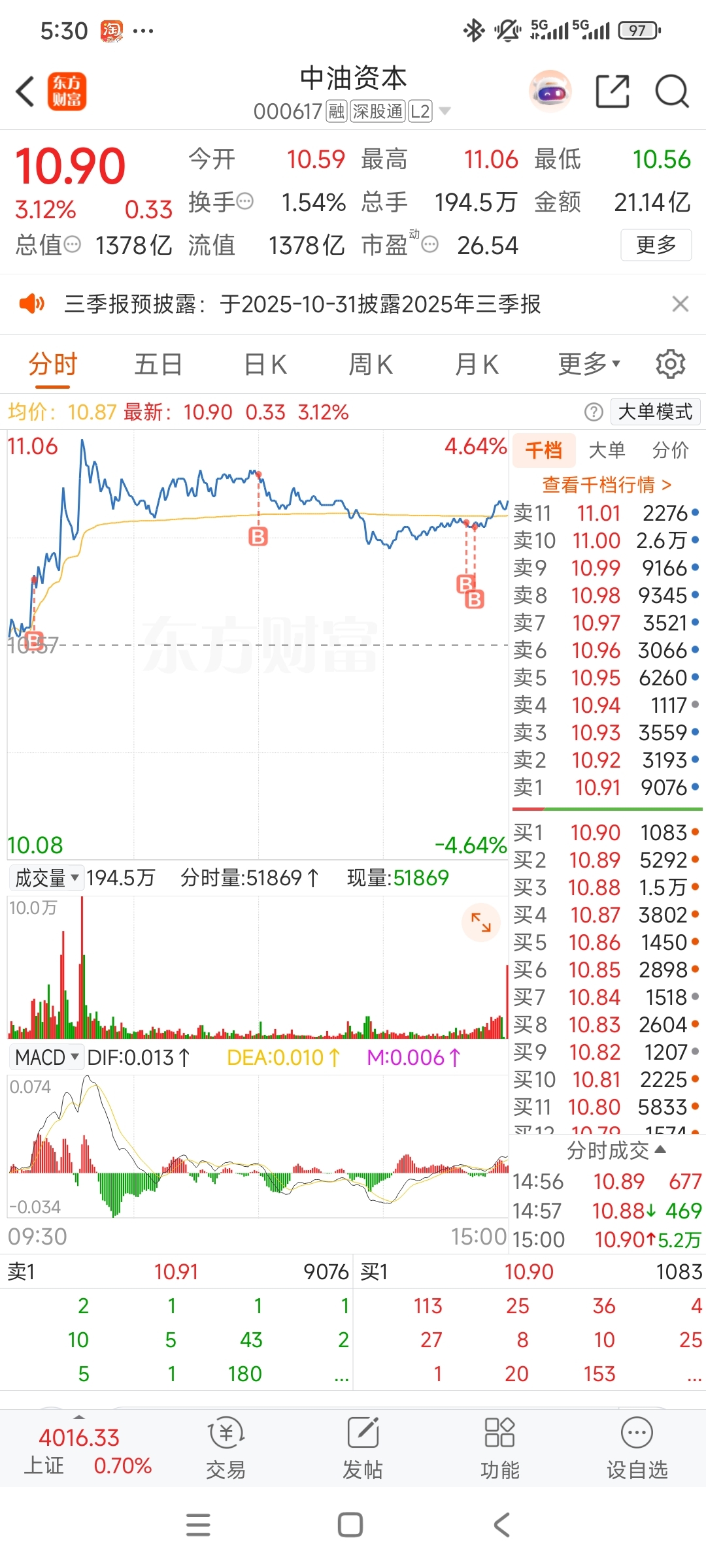 今天中油资本已经补仓完毕,基本上回到正常仓位了。跟大家汇报一下。