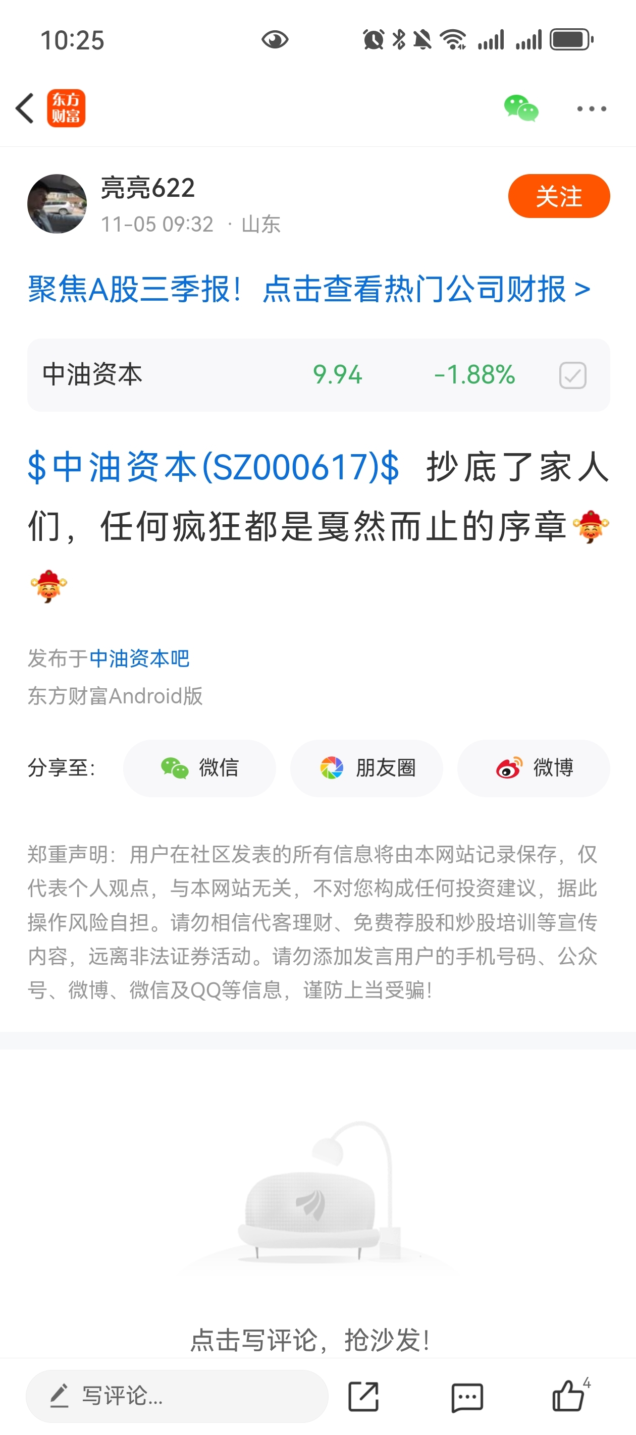 $中油资本(SZ000617)$ 我就评论:不要唱了,这样子会误导很多人!就删我评论,拉黑我,你就这格局?