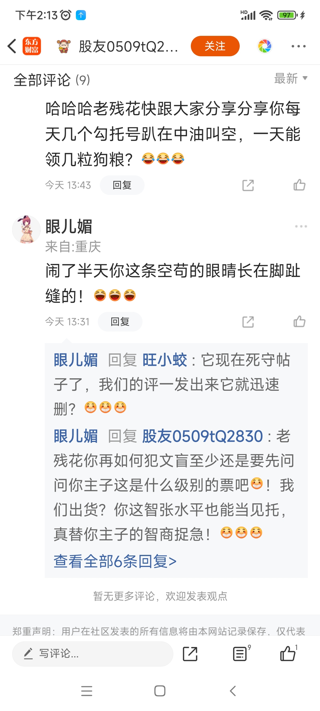 温馨提示: 1.根据《证券法》规定,禁止编造、传播虚假信息或者误导性信息,扰乱证券市场;2.用户在本社区发表的所有资料、言论等仅代表个人观点,与本网站立场无关,不对您构成任何投资建议。用户应基于自己的独立判断,自行决定证券投资并承担相应风险。《东方财富社区管理规定》