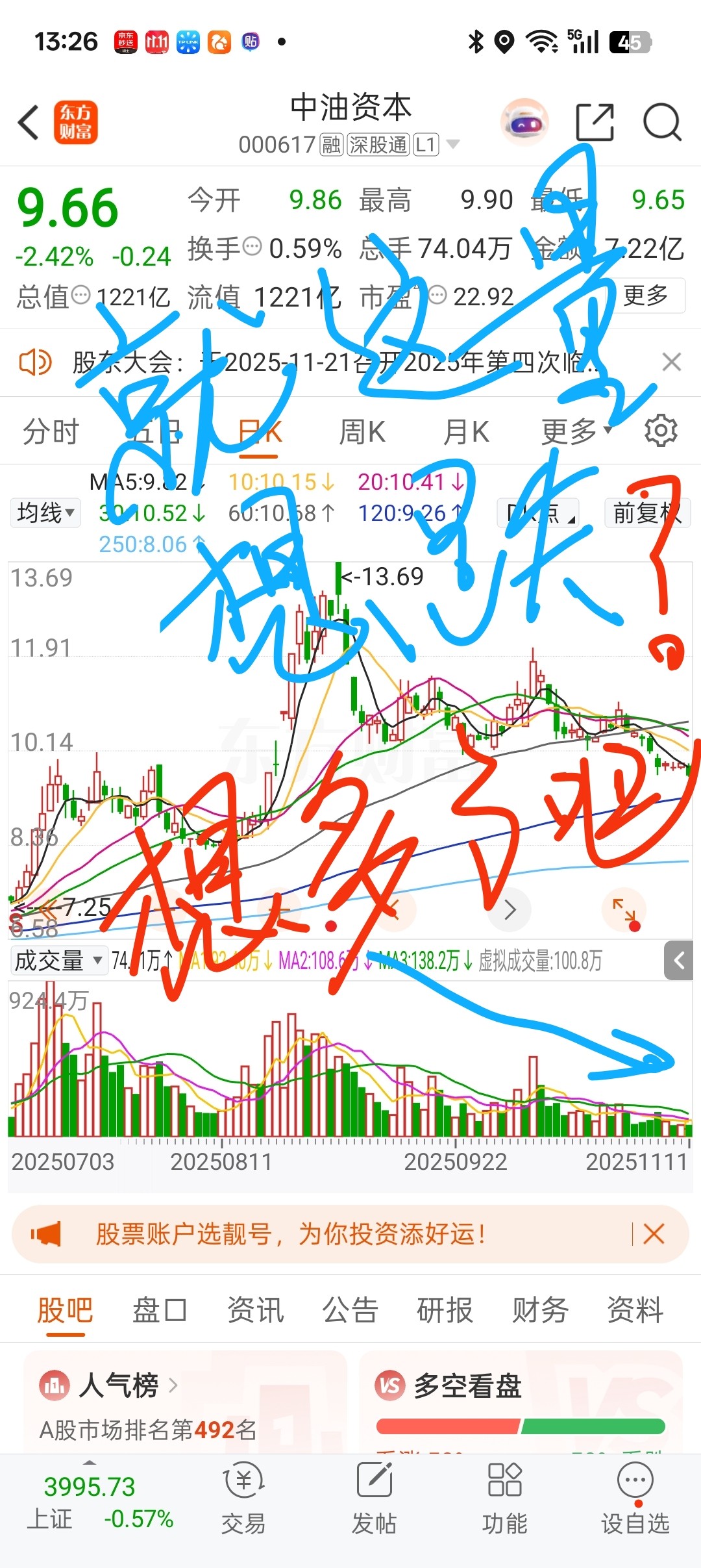 $中油资本(SZ000617)$ 就这个量想跌?