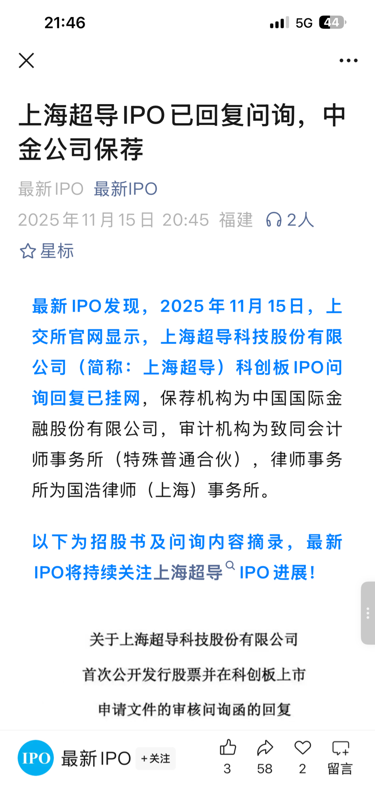 昆仑资本持有上海超导0.76%的股份,近期上海超导的科创板IPO申请已正式获得受