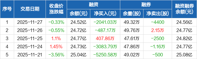 中油资本:融资净偿还2041.03万元,融资余额24.52亿元(11-27)