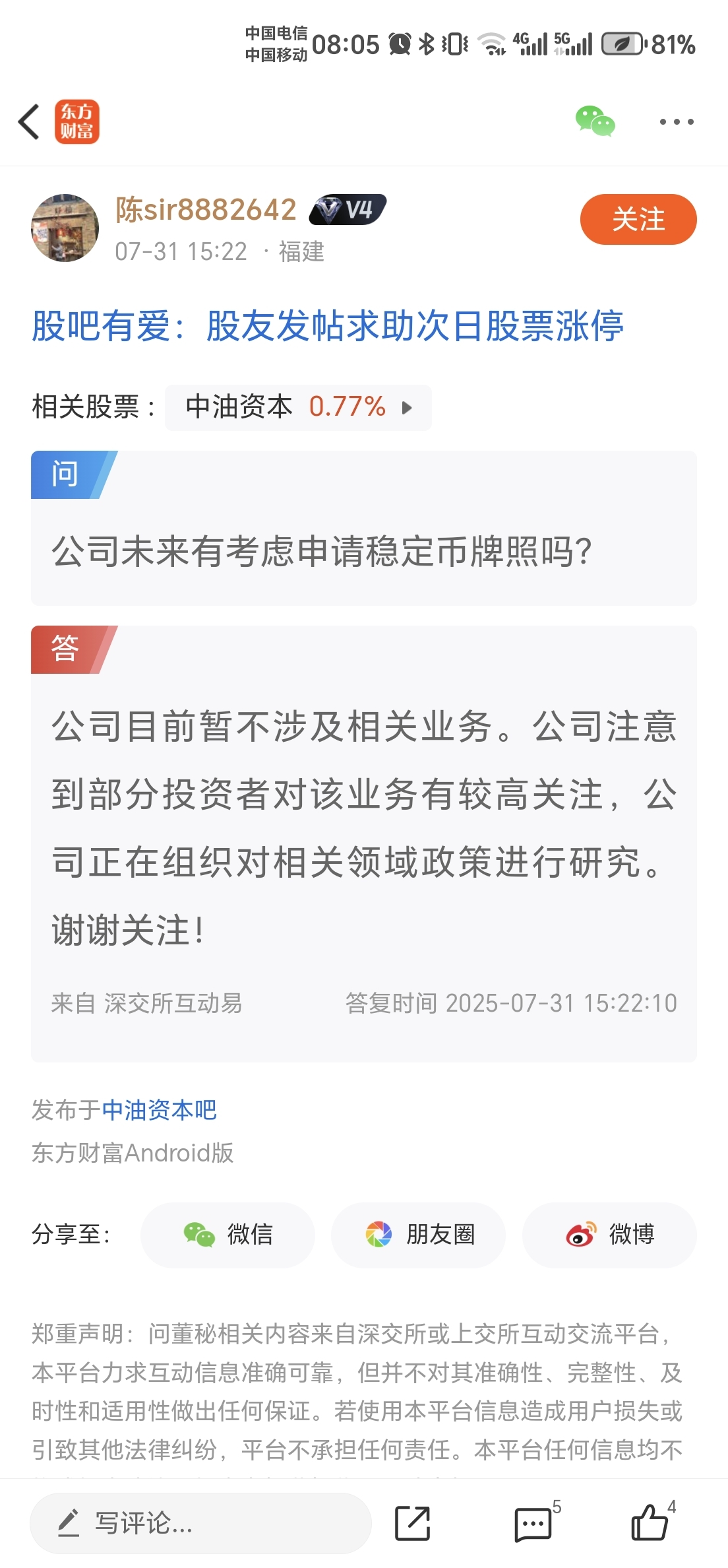 $中油资本(SZ000617)$ 中油烂本跟稳定币没有半毛钱关系