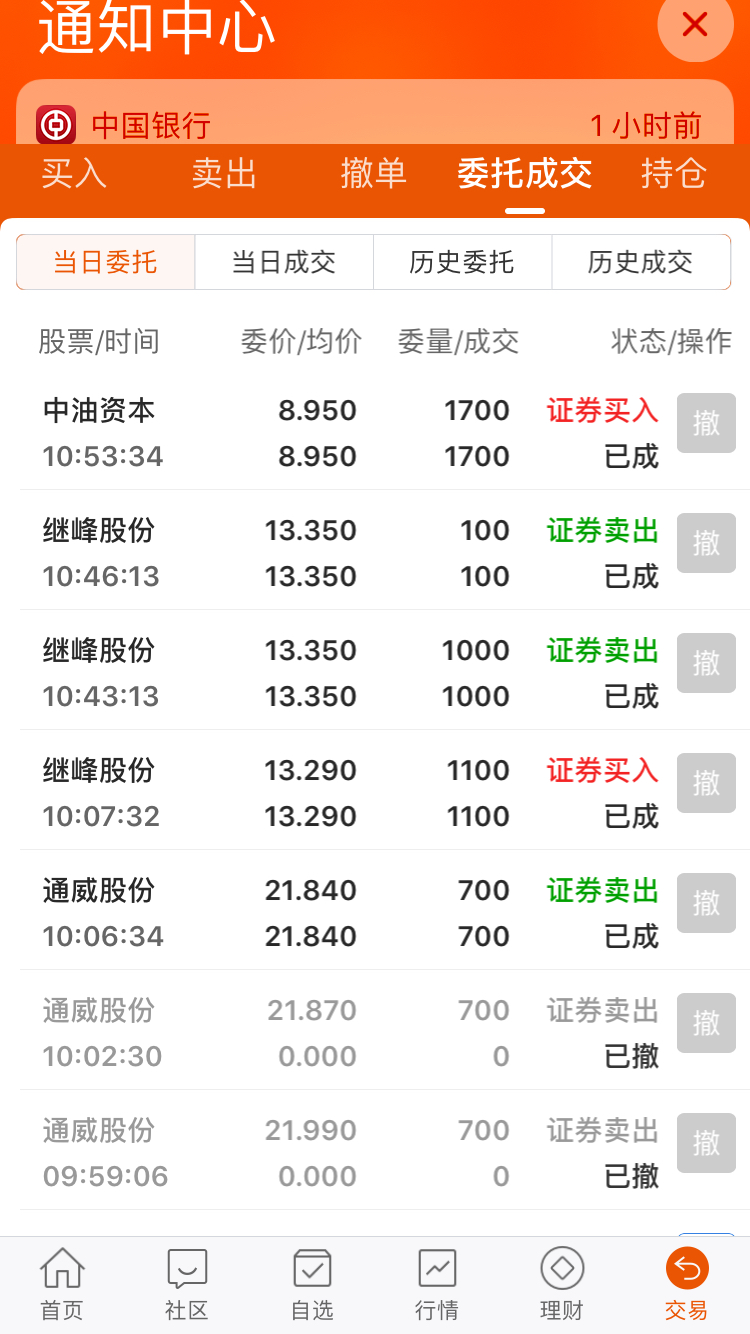 通常,我一买入就急跌,看这次如何,满仓支持中油资本。抢反弹来的。