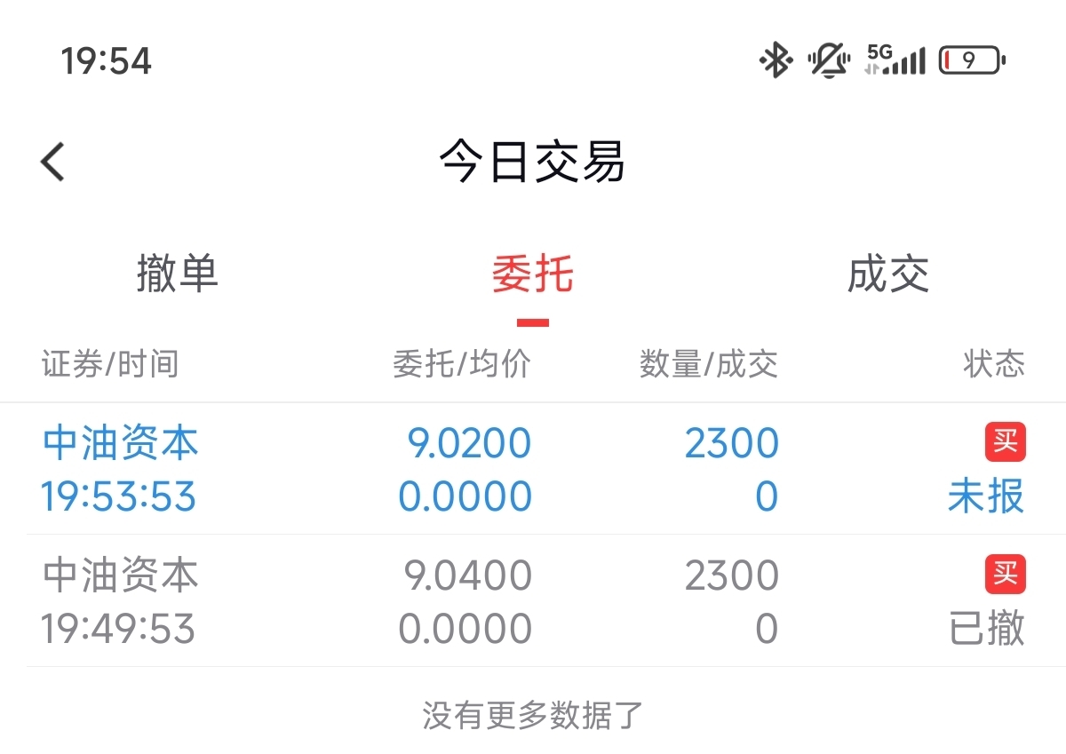 $中油资本(SZ000617)$ 夜单委托,一步。