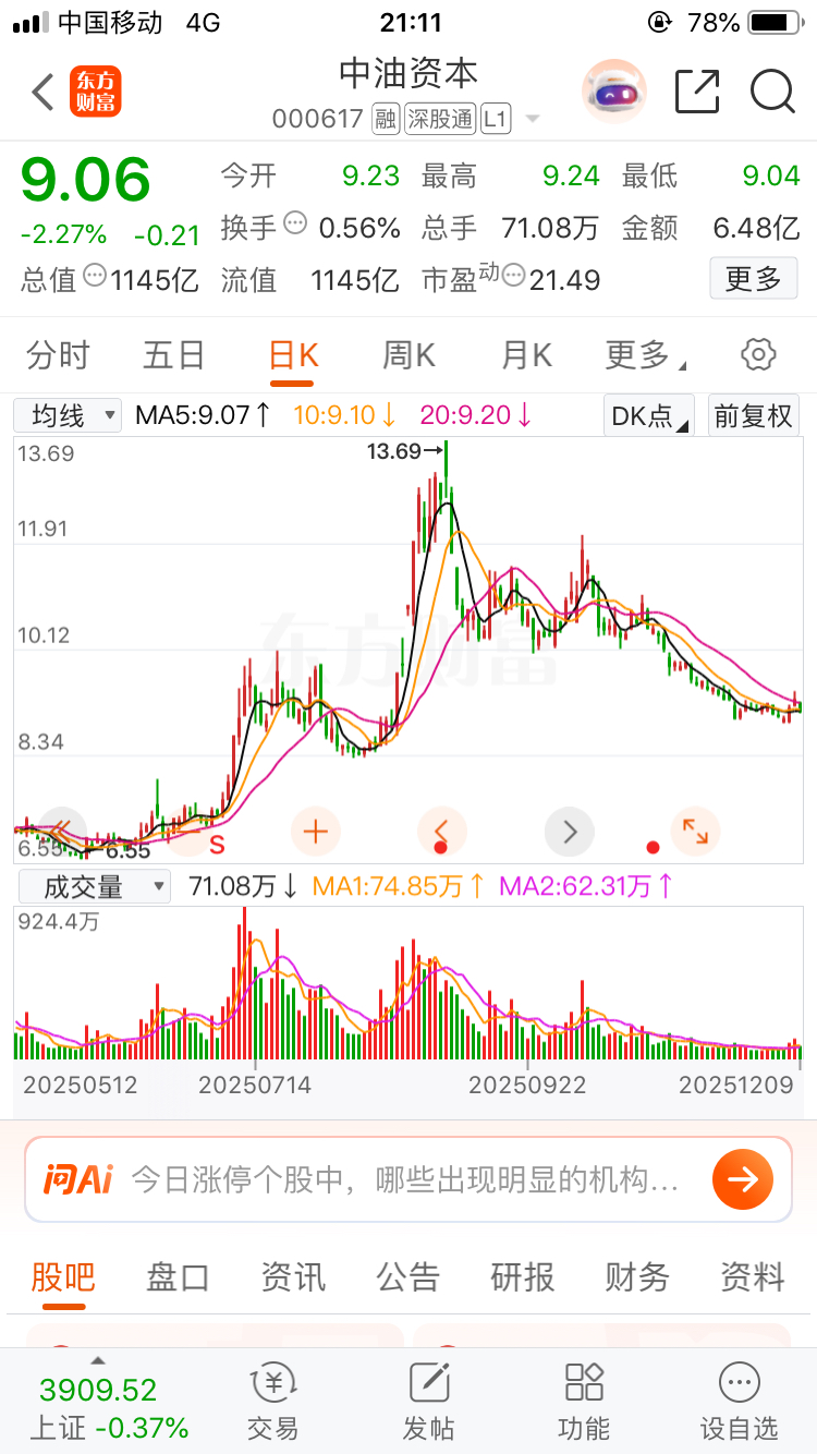 $中油资本(SZ000617)$ 中油资本需要再横盘震荡一段时间,夯实8.87元的止跌位,不能再跌穿止跌线。否则再下一个台阶。9元以下低吸,9.5左右丅出,突破10元加仓,跌破8.87止损。