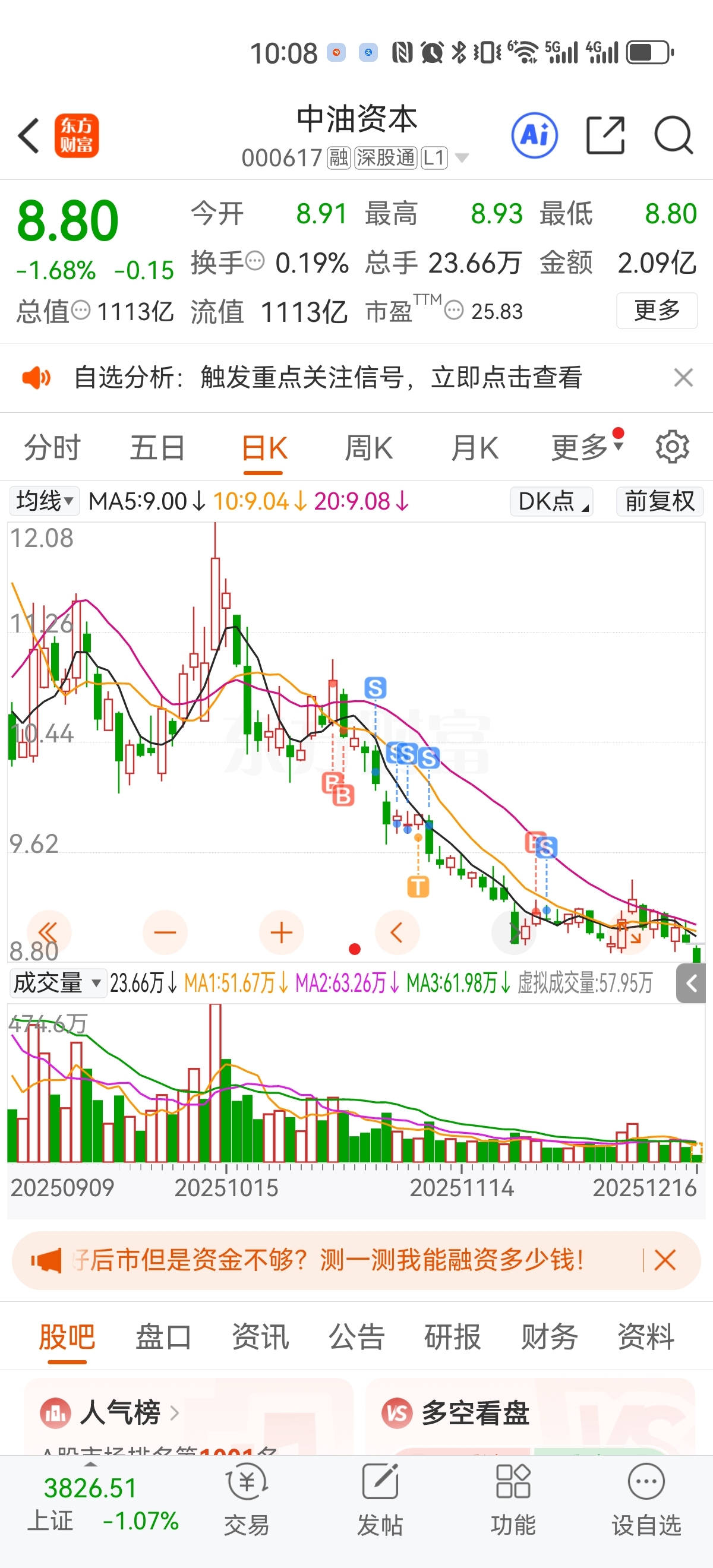 $中油资本(SZ000617)$ 什么时候卖都是对的,留了一百股,天天看你恶心人