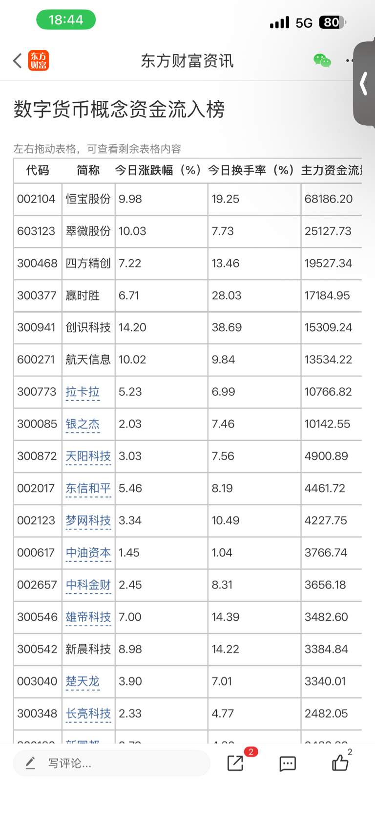 $中油资本(SZ000617)$ 数字货币板块净流入