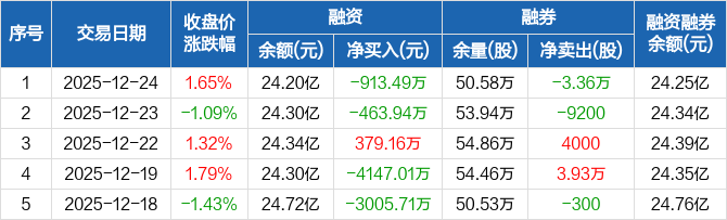 中油资本:融资净偿还913.49万元,融资余额24.2亿元(12-24)
