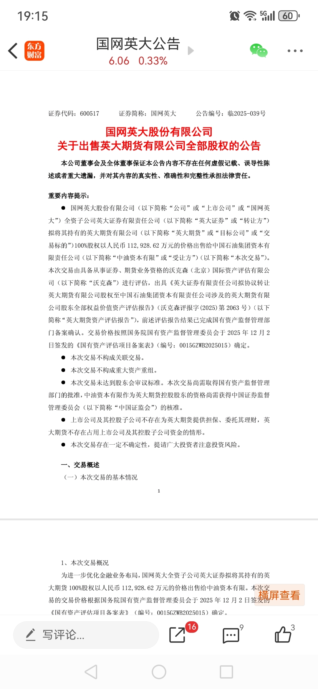 国网英大出公告了!中油资本稍后应该也会出公告!严格意义上算是资产重组,至于停盘不