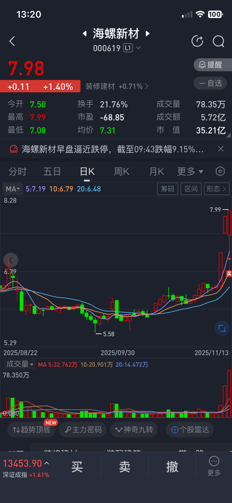$海螺新材(SZ000619)$ 哈哈哈哈哈涨停赚20个点