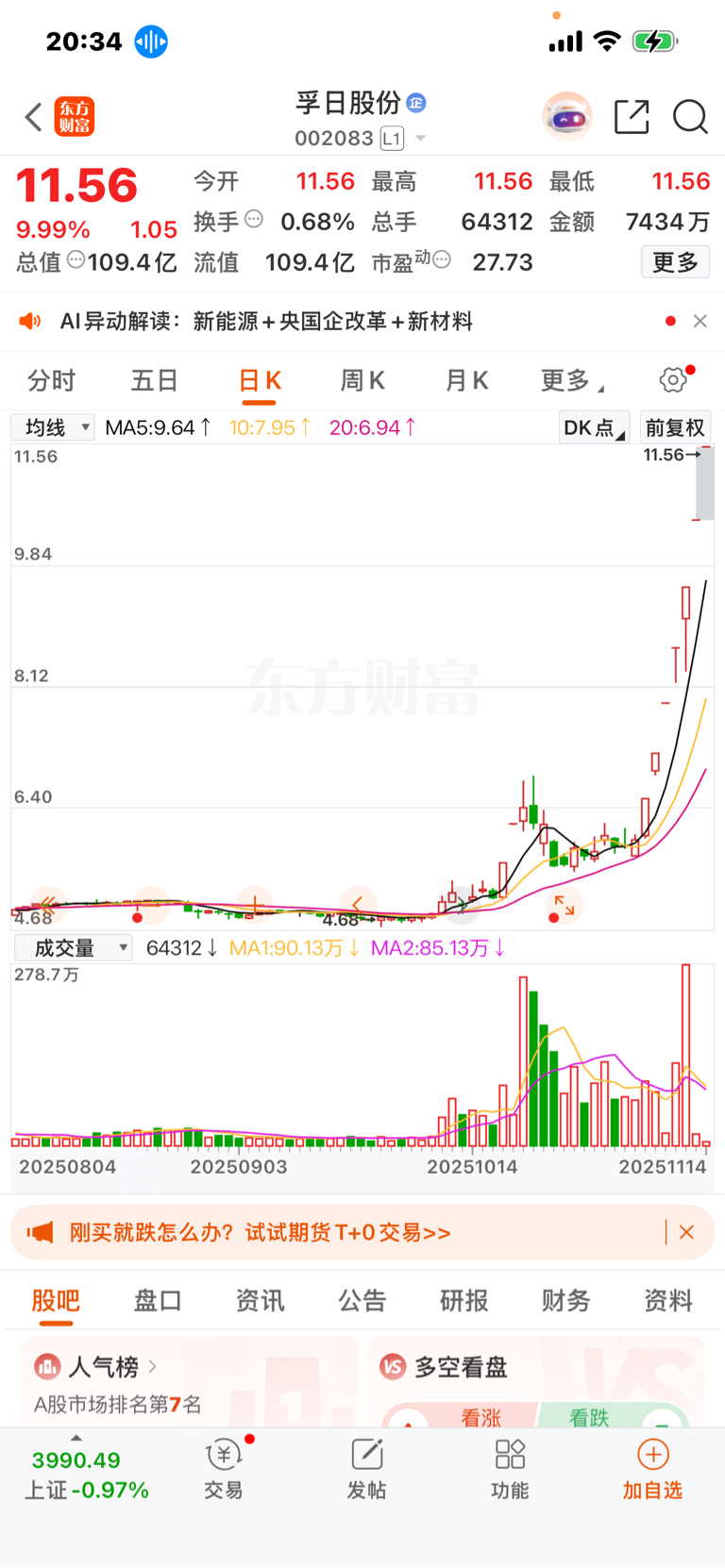 意一下,给大家打打气,市值低,年线才涨百分之二十。总比接高位股强,加上现在400