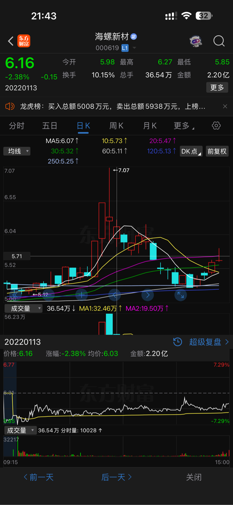$海螺新材(SZ000619)$ 按这个走势,明天低点再抄。一毛一样的走势了